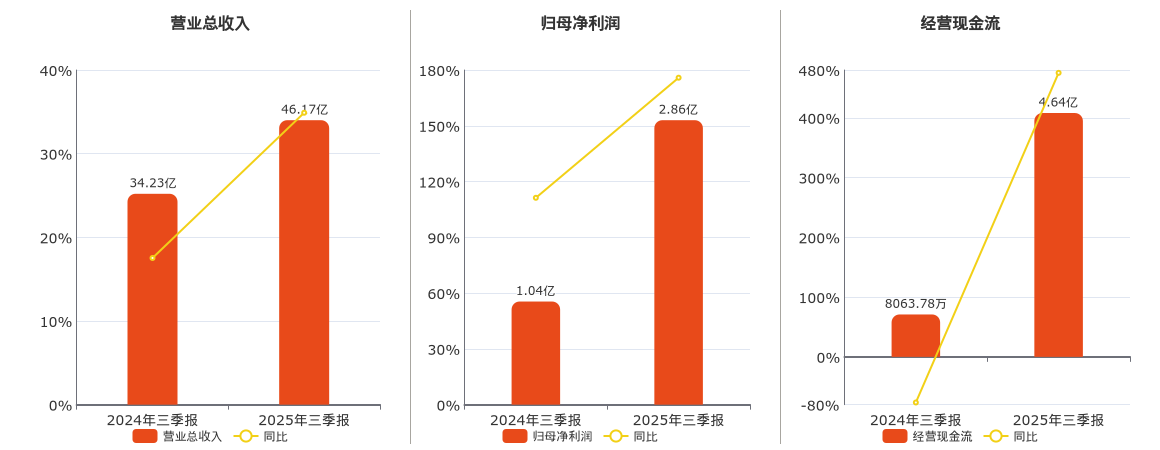 公司营业总收入为46.17亿元。归母净利润为2.86亿元博宝配资。经营活动现金净流入为4.64亿元。