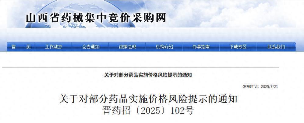 山西省药械集中招标采购中心发布《关于对部分药品实施价格风险提示的通知》群益证券,多款中成药存在疑似高价问题。官网截图